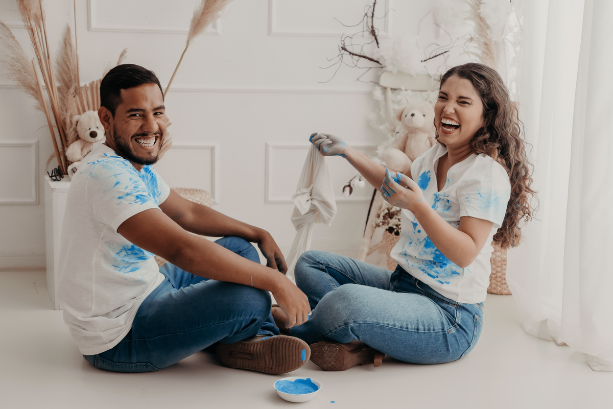 Cobertura fotográfica do evento, registrando reações, detalhes e a revelação do sexo do bebê.